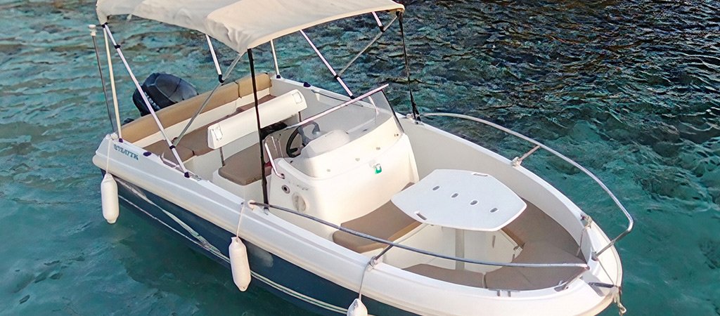 À bord, profitez d’un bain de soleil généreux, de banquettes confortables, d’un taud protecteur, d’une douchette d’eau douce, d’une table à manger, ainsi que d’un autoradio Bluetooth et d’un chargeur USB. Masque, tuba et palmes sont inclus.